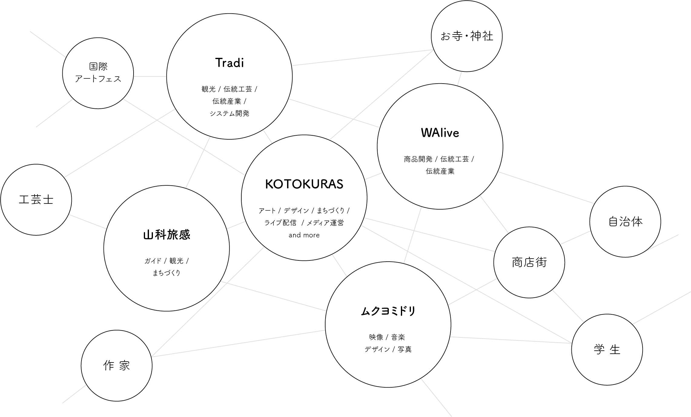 地域の豊かさを考え事業を実行し、社会実装を試みる連合をつくり、まちづくり、観光、伝統、アート、様々な領域でプロジェクトを立ち上げております。
