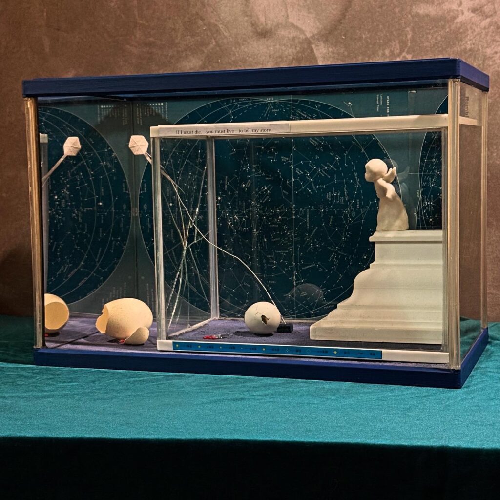 ブリキ缶の作品は装甲のように守られて見えますが、その胴の周囲には切れ込みが入り、精神的にも物理的にも“入り込む”余地を与えています。